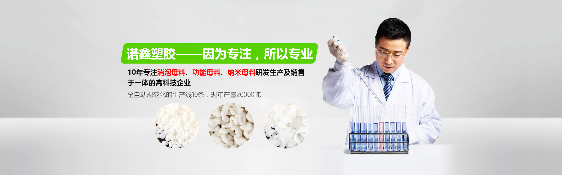 慶云諾鑫塑膠新材料有限公司有著近20年的研發生產經驗,專業生產各種填充母料、色母料、消泡母料。公司實力雄厚,諾鑫偉業因為專注,所以專業,誠邀國內外客戶洽談合作